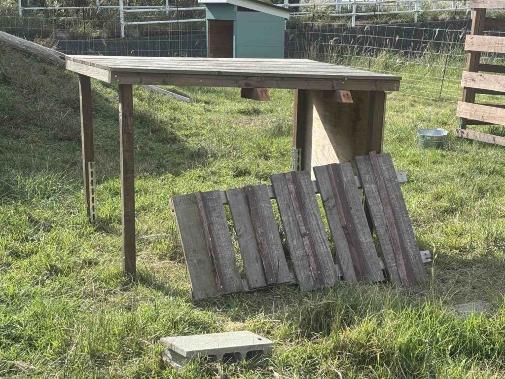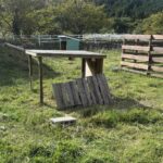 よくヤギを観にくるおじいちゃんに登るのが好きなんだから、登れるようにしてやれといわれ何度か修復してみたけど、都度壊される。